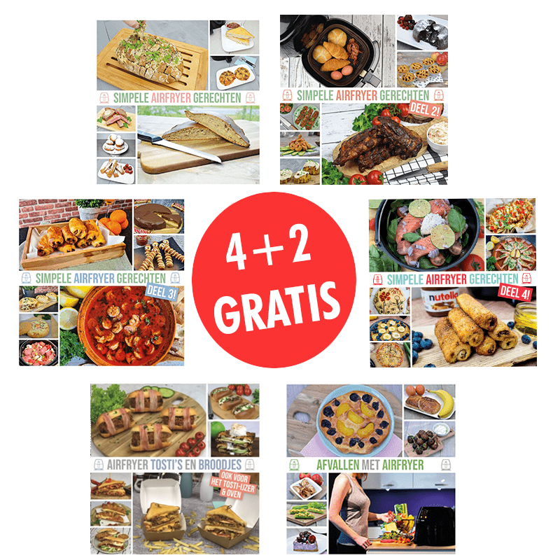 Wil jij het maximale uit je Airfryer halen? Grijp dan nu je kans met deze exclusieve aanbieding! Ontvang alle 6 Airfryer kookboeken in één pakket en betaal slechts voor 4 boeken. Maar let op: deze aanbieding geldt tijdelijk – op = op!