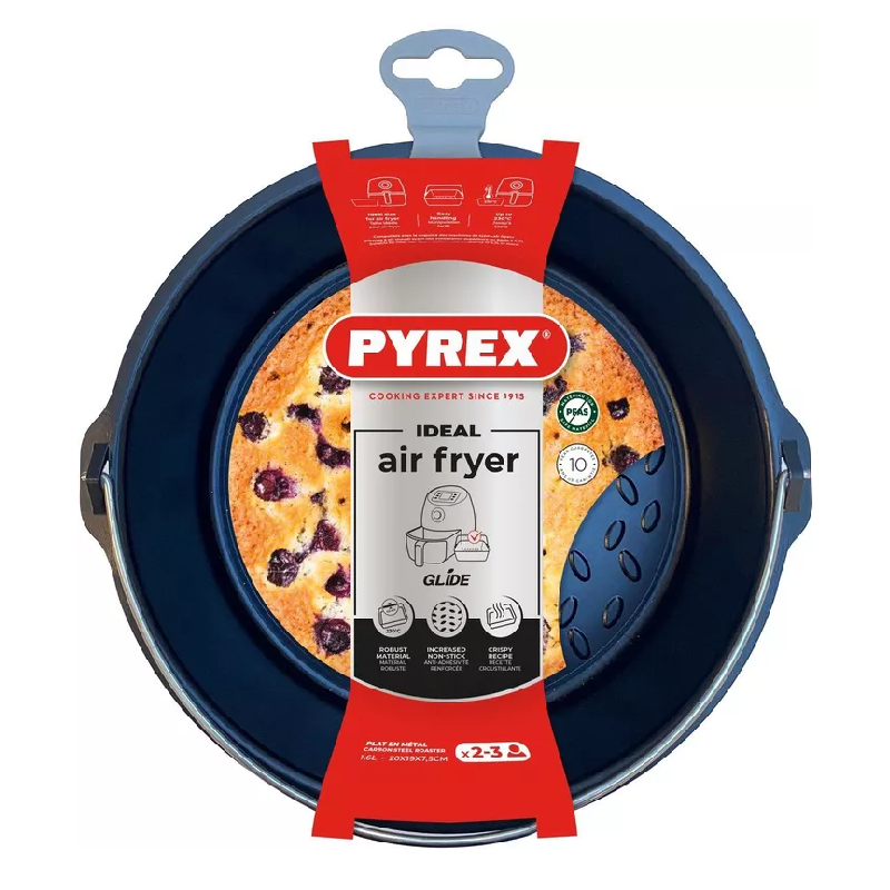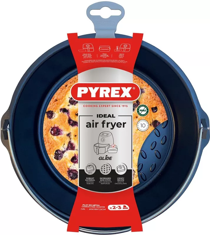 Speciaal ontworpen voor gebruik in de airfryer 🍟: deze ronde Pyrex bakvorm is de perfecte keuze om het maximale uit je airfryer te halen. Dankzij het compacte formaat van 20 x 18 cm past de vorm ideaal in de meeste airfryers, waardoor je eenvoudig gerechten zoals brownies 🍫, ovenschotels of hartige taarten 🥧 bereidt.